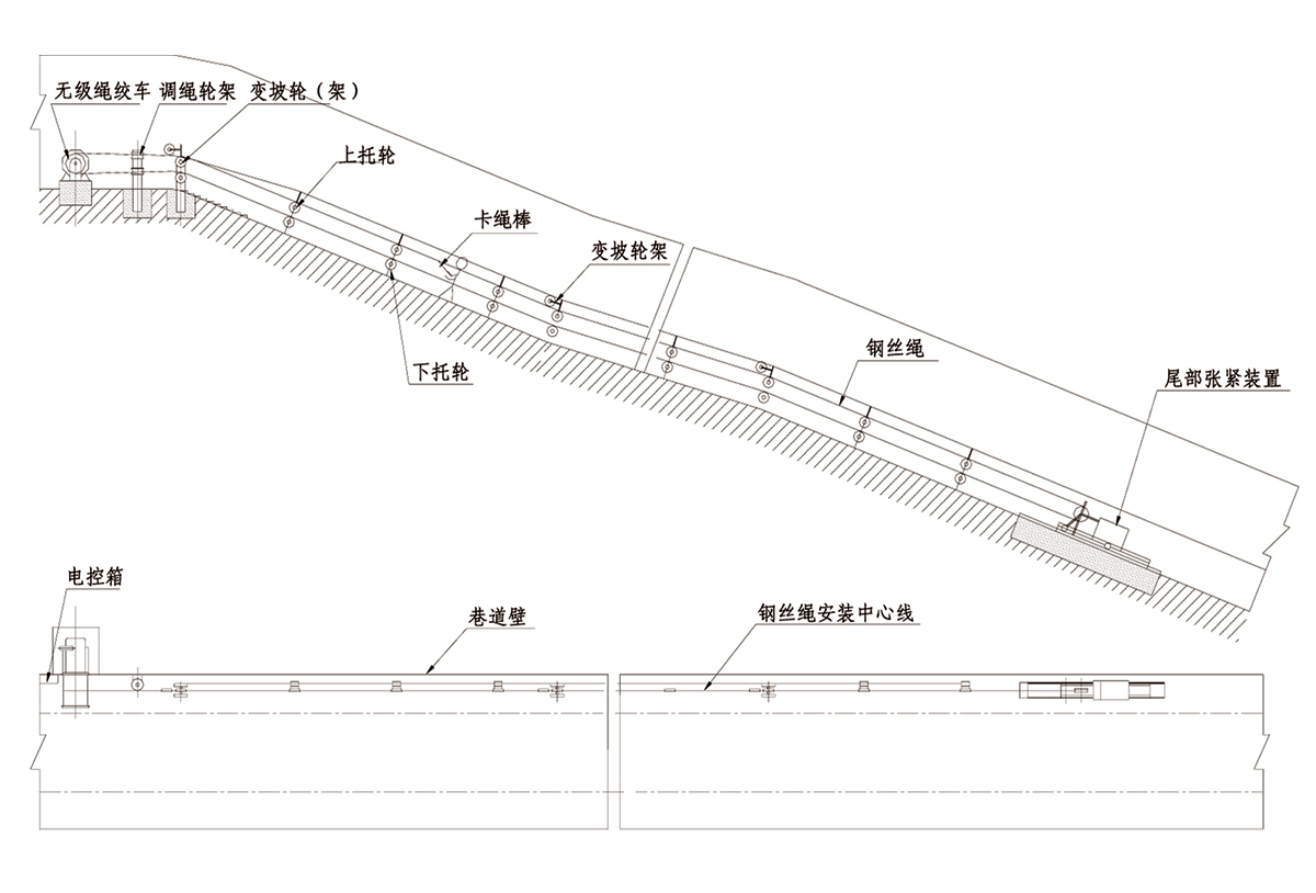 1、 對(duì)運(yùn)行巷道無(wú)特殊要求,基本上不占據(jù)巷道空間,設(shè)備一次性投入低;